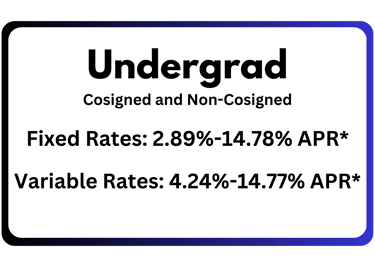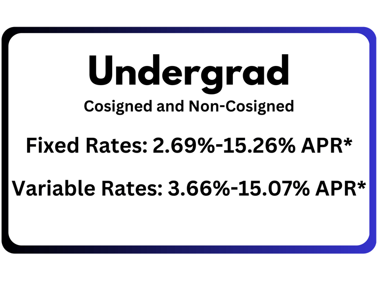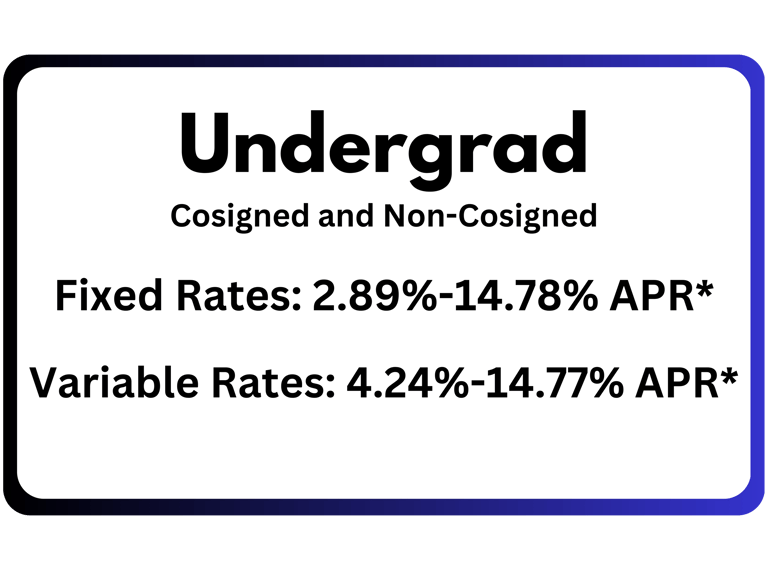 Ascent offers competitive interest rates and a variety of benefits for borrowers. Most plans are able to be customized using a variety of different methods such as the type of repayment plan, and repayment length (5, 7, 10, 12, 15 years). Ascent’s non-consigned outcomes-based loan requires students to have a 3.0 GPA or higher, be a college junior or senior, and only offers a 10 or 15 year term. Ascent undergraduate loans cover over 80% of 4-year schools and select for-profit schools.