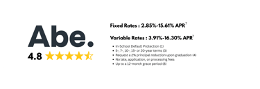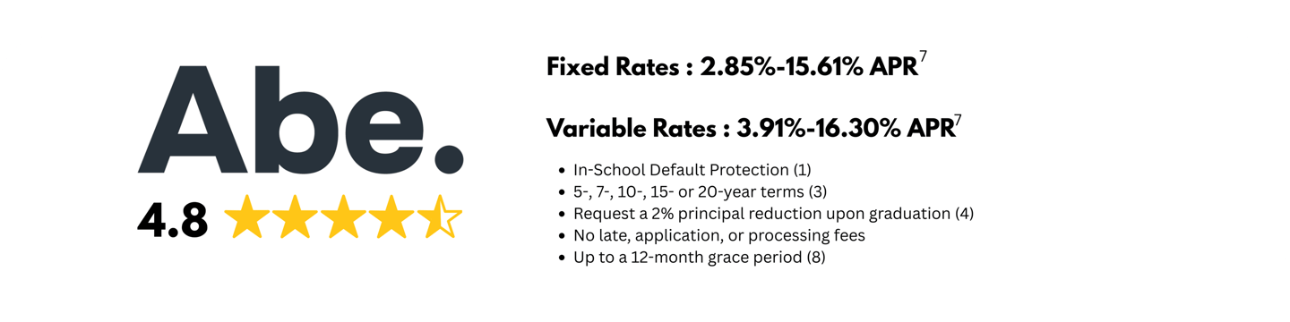 5) The Abe student loan is available to applicants who are U.S. citizens, permanent resident aliens, or Eligible Non-Citizens (DACA recipients). International students can apply for the Abe student loan with an eligible cosigner who is a U.S. citizen or permanent resident alien. The Abe student loan is not available to permanent residents of West Virginia.